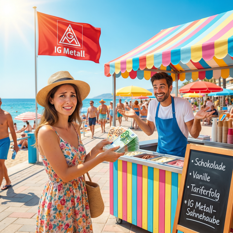 Das Urlaubsgeld von der IG Metall rechtzeitig auszugeben.